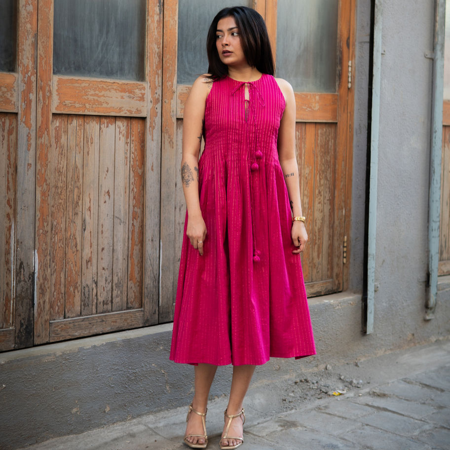 Crafted from handwoven zari cotton, this piece is finished with azo-free pink dyes and made with a great deal of love. Designed to be gentle on the skin and timeless in wear, its clothing is made slowly and meant to stay.